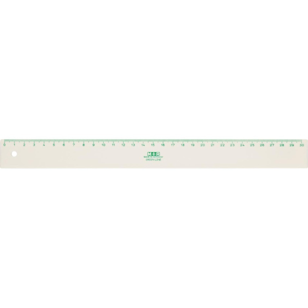Règle de 30 cm en assorti : blanc, vert, jaune. Cette règle est fabriquée à partir d'amidon de maïs et de matières premières recyclables (PLA). Coloris aléatoires..