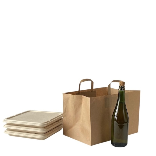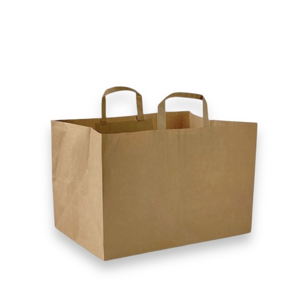 SAC CABAS KRAFT POIGNEES PLATES BRUN 120Gr 35.5x33x31cm - paquet de 100