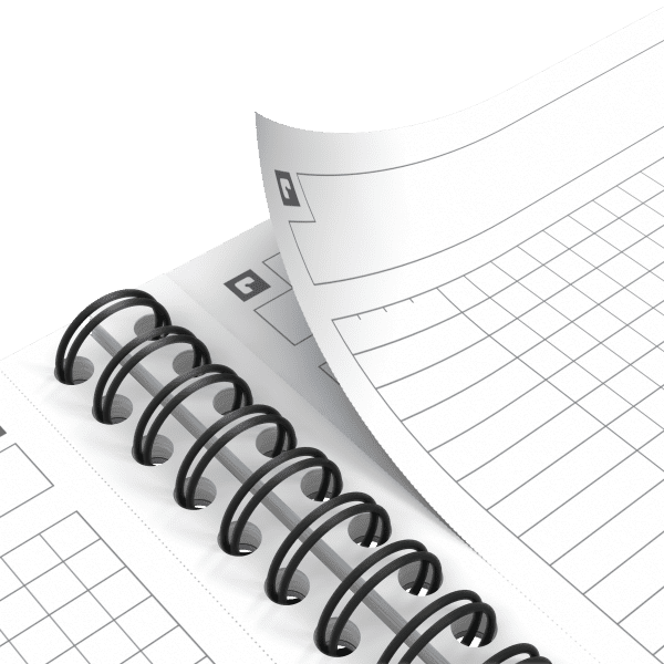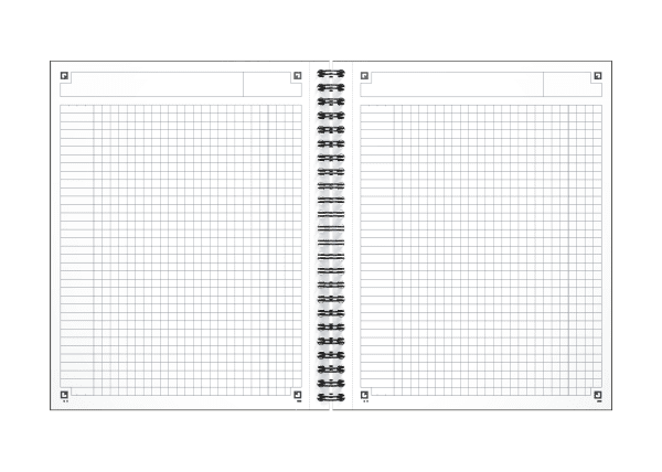 Le cahier classique version Internationale, le Notebook en version reliure intégrale avec feuilles micro-perforées détachables. L'originalité de la version brochure: les coins détachables pour se repérer. Couverture rembordée. Réglure quadrillée 5x5mm. Format : A5+ (17.5 x 22cm). Nombre de pages : 160.