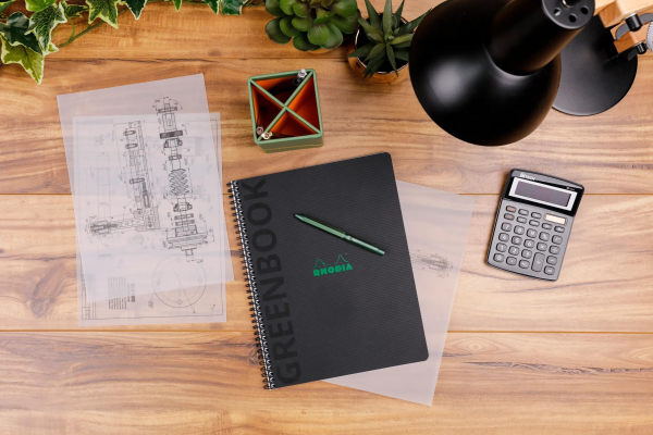 GREENBOOK SPIRALE A5+ Q5 RHODIA NOIR 80 FEUILLES 6 TROUS MICRO-PERFORES