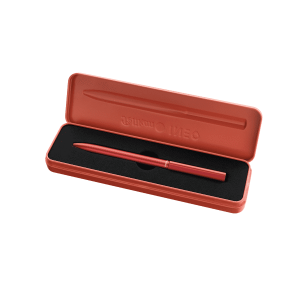 Affirmé et dynamique, le stylo à bille Pelikan INEO "Fiery Red" porte une finition aluminium anodisé rouge mat aux reflets perles. Sans clip, avec un mécanisme par rotation et une partie supérieure en forme de goutte antiglation, ce stylo à bille minimaliste incarne élégance et pureté. Il est idéal pour les amateurs de design qui souhaitent allier style et performance, grâce à sa recharge grande capacité encre bleue ISO 12757-2 et son ergonomie étudiée.