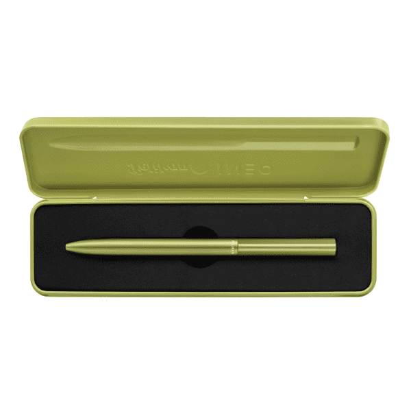 Inspiré par la nature, le stylo à bille Pelikan INEO "Green Oasis" arbore un corps aluminium anodisé vert mat à la finition sablée et perle. Sans clip, avec un mécanisme par rotation et une partie supérieure en forme de goutte antiglation, ce stylo à bille minimaliste incarne élégance et pureté. Il est idéal pour les amateurs de design qui souhaitent allier style et performance, grâce à sa recharge grande capacité encre bleue ISO 12757-2 et son ergonomie étudiée.