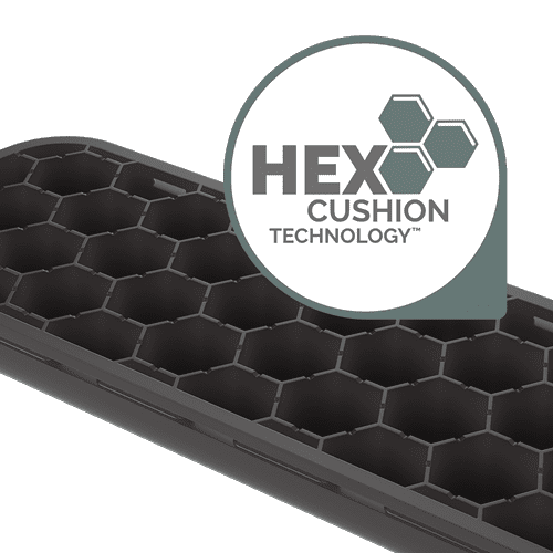 Coussin en silicone avec la technologie HEX Cushion brevetée offre confort et soutien pour soulager la douleur et l'inconfort lors de la frappe. Idéal pour le travail hybride : compact, léger et portable. Protection Microban, technologie HEX Cushion. Testé par FIRA International. Dimensions : 1.75x6x18 cm.