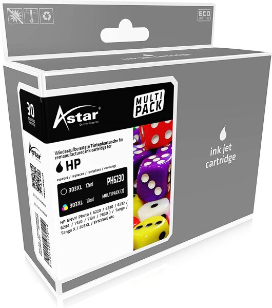 CARTOUCHE JET D'ENCRE COMPATIBLE HP N°303XL NOIR 12ml ET CYAN/ MAGENTA/ YELLOW 10ml ASTAR