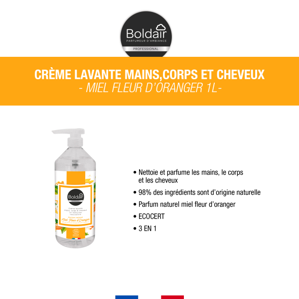 SAVON LIQUIDE BOLDAIR MIEL FLEUR D'ORANGER 1L FLACON