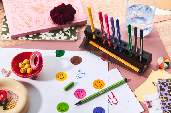 La Click Box de STABILO Pen 68 est un étui rigide et réutilisable 2-en-1 contenant 10 feutres STABILO Pen 68, parfait pour organiser, exposer et transporter vos couleurs. Inspiré du savoir-faire Beaux-Arts de STABILO, ce feutre offre une pointe ogive de 1 mm et une encre à base d'eau inodore. Polyvalent et durable, il peut rester ouvert jusqu'à 24 heures sans sécher grâce à son procédé anti-dessèchement, offrant une expérience de création sans limite. Fabriqué en Allemagne et certifié ISCC Plus, 96?% du plastique utilisé pour le corps et le capuchon est biosourcé (bilan massique), s'inscrivant dans une démarche responsable. La Click Box s'ouvre pour exposer vos feutres sur le bureau et se referme pour un rangement compact, pratique pour la maison, l'école ou le bureau.