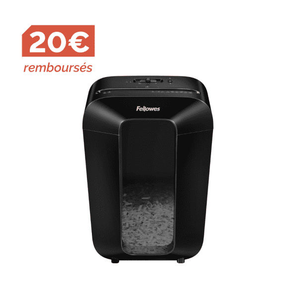 Utilisation modérée à la maison ou dans un bureau individuel. Détruit 11 feuilles par passage en particules de 4x40mm coupe croisée (DIN P-4). Technologie de verrouillage sécurisé pour une protection maximale. Détruit continuellement pendant 5 minutes avant une période de refroidissement de 30 minutes. Corbeille de 18L. Détruit agrafes, trombones et cartes de crédit. Pour usage individuel. Dimensions: H.46xL.31xP.22cm. Poids: 5,30kg. Garantie sur les cylindres de coupe 3 ans et sur les machines 3 ans (2+1 an : enregistrez le produit auprès de Fellowes pour bénéficier d'une année supplémentaire). https://www.fellowes.com/fr/fr/support/pg/product-registration
