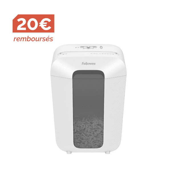 Utilisation modérée à la maison ou dans un bureau individuel. Détruit 11 feuilles par passage en particules de 4x40mm coupe croisée (DIN P-4). Technologie de verrouillage sécurisé pour une protection maximale. Détruit continuellement pendant 5 minutes avant une période de refroidissement de 30 minutes. Corbeille de 18L. Détruit agrafes, trombones et cartes de crédit. Pour usage individuel. Dimensions: H.46xL.31xP.22cm. Poids: 5,30kg. Garantie sur les cylindres de coupe 3 ans et sur les machines 3 ans (2+1 an : enregistrez le produit auprès de Fellowes pour bénéficier d'une année supplémentaire). https://www.fellowes.com/fr/fr/support/pg/product-registration