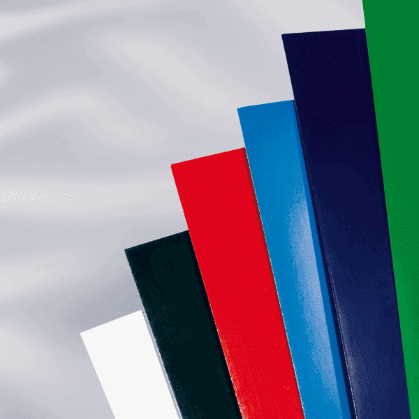Plat de couverture pour reliure en carton brillant sur la face extérieure et mat sur face intérieure 250gr.