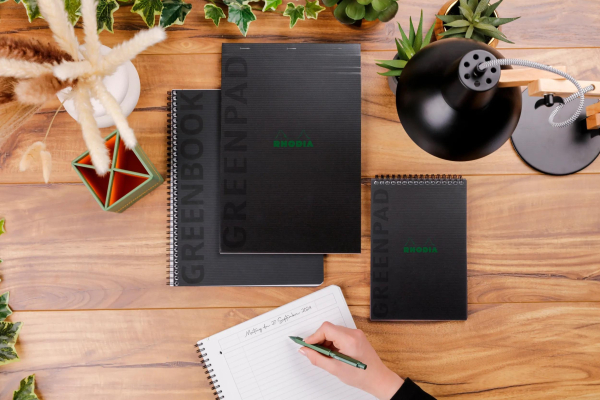 GREENPAD SPIRALE A4+ LIGNE RHODIA NOIR 80 FEUILLES 4 TROUS MICRO-PERFORES