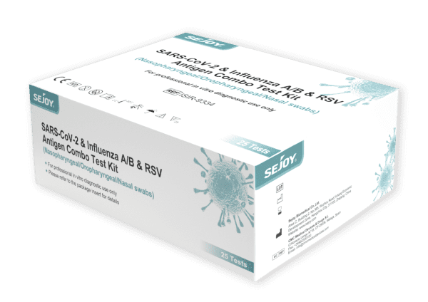 Le kit de test antigénique combiné SARS-CoV-2, grippe A/B et VRS Sejoy permet la détection qualitative simultanée et la différenciation in vitro des antigènes du SARS-CoV-2, des virus de la grippe A et B, et du VRS. Il s'utilise sur des échantillons d'écouvillons oropharyngés, nasaux ou nasopharyngés prélevés chez les patients.