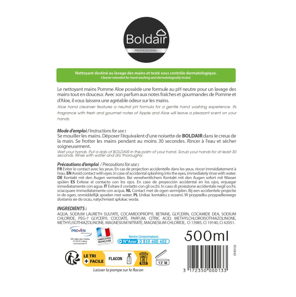 SAVON LIQUIDE BOLDAIR POMME ALOE VERA 500ml FLACON